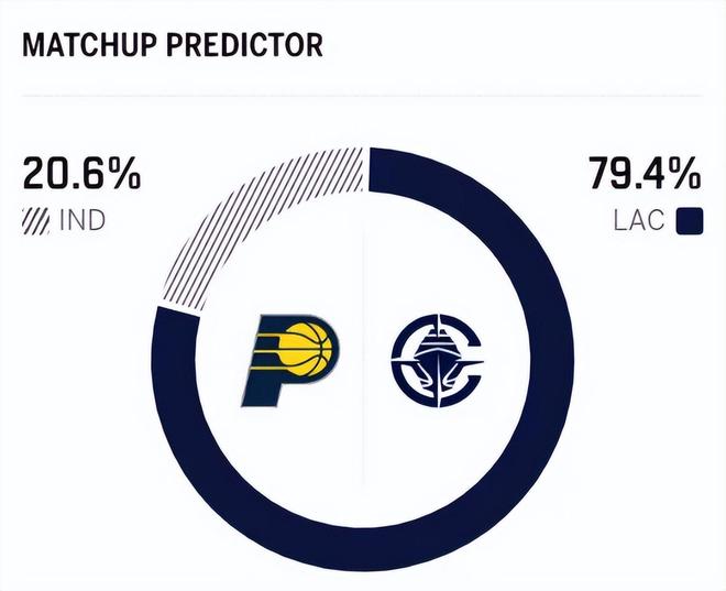 赛前,美媒ESPN对本场比赛进行了胜率预测,快船队胜率高达79.4% ,步行者胜率则仅有20.6% ,差距还挺明显。